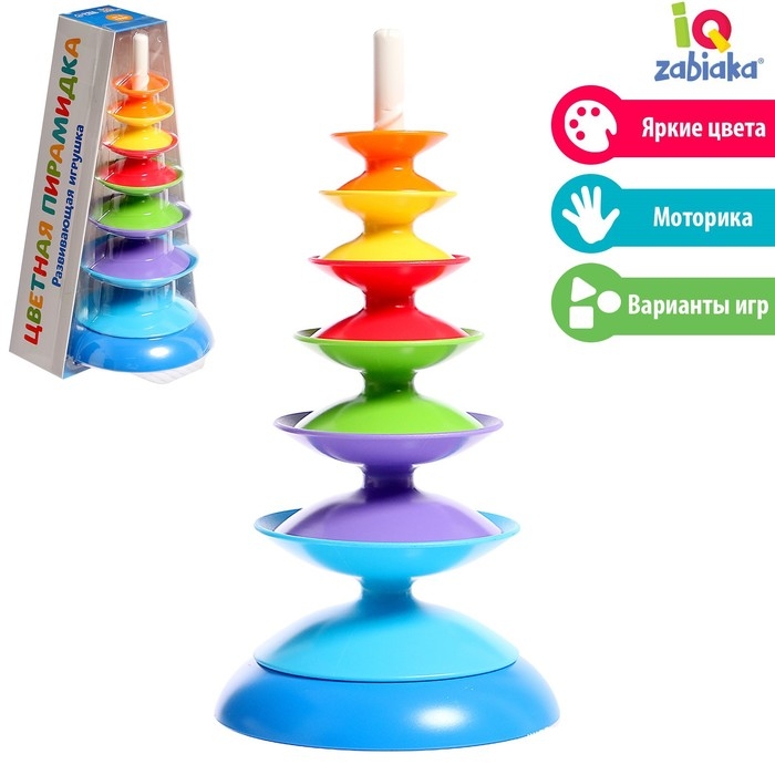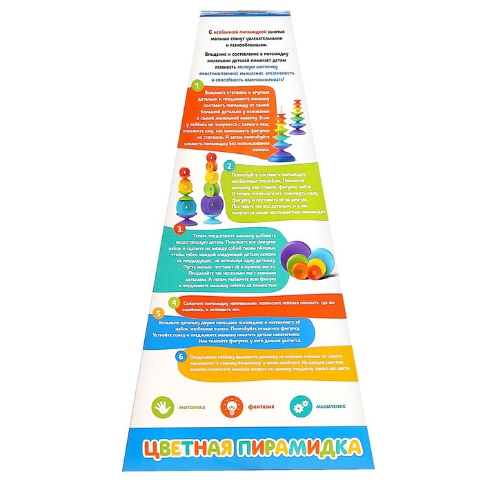Развивающая игрушка «Цветная пирамидка» разработана специально для малышей с 1 года. Занятия с такой игрушкой помогут крохе потренировать пространственное мышление, воображение, внимание и мелкую моторику рук.
