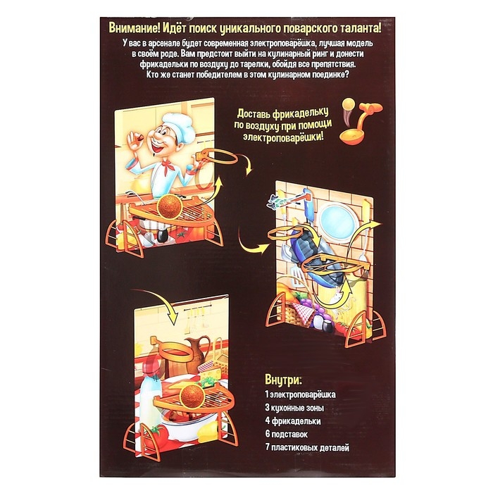 С настольной игрой «Битва шефов» ребёнок прокачает координацию движений и ловкость и научится терпению и упорству. Ведь пронести фрикадельку по воздуху через все препятствия, да ещё и с первого раза — задача не из простых!