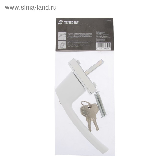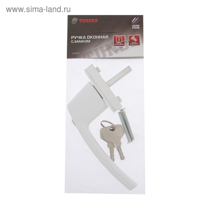 Ручка оконная ТУНДРА с замком 35 мм, металлическая, белая