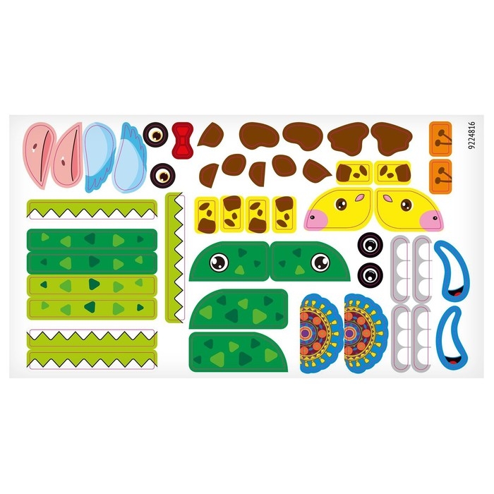 - Следуя подробной инструкции, малыш соберёт слона, крокодила, жирафа и фламинго.