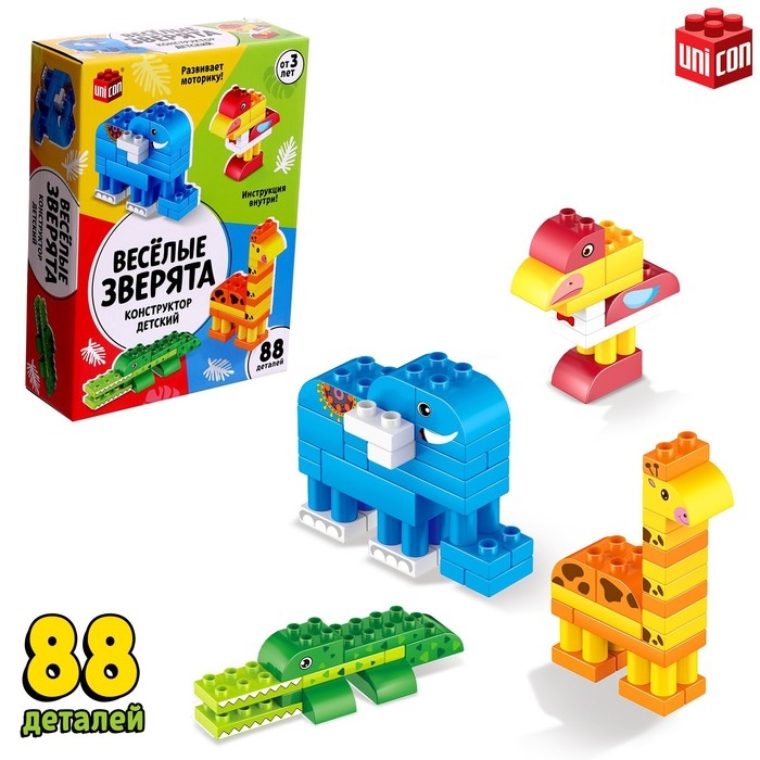 Конструктор «Весёлые зверята» — набор из множества блочных деталей. Ребёнок соберёт милых зверят, поиграет с ними и потренирует важные навыки!