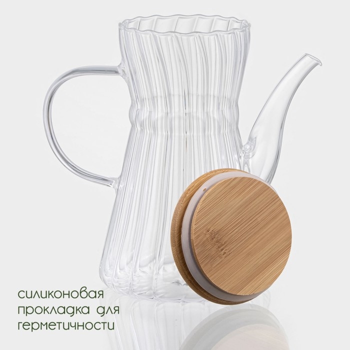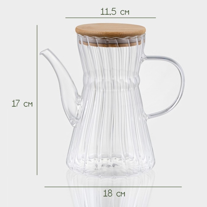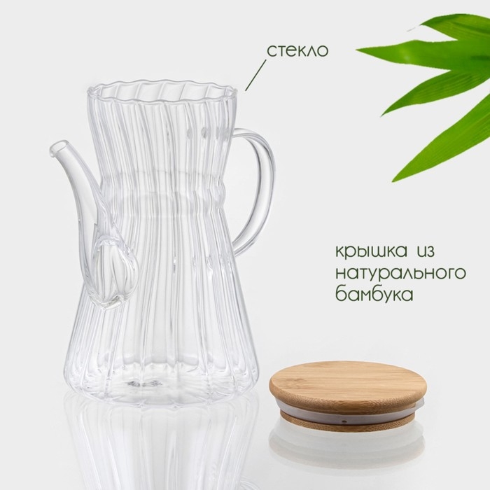 Чайник заварочный стеклянный с бамбуковой крышкой BellaTenero «Эко. Восток», 800 мл, 18×11,5×17 см