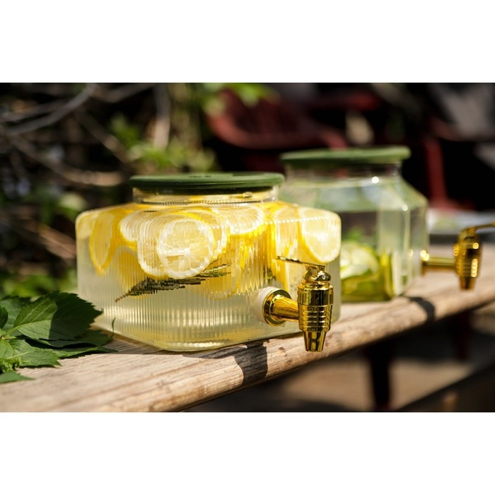Диспенсер для напитков стеклянный «Фреш», 4 л, 21×16×24 см, цвет жёлтый