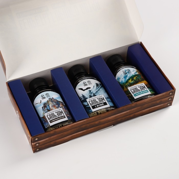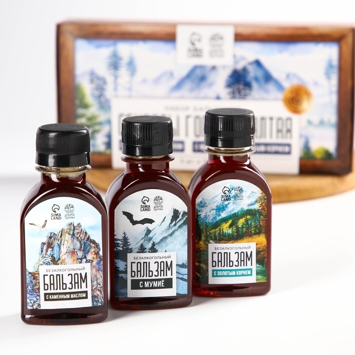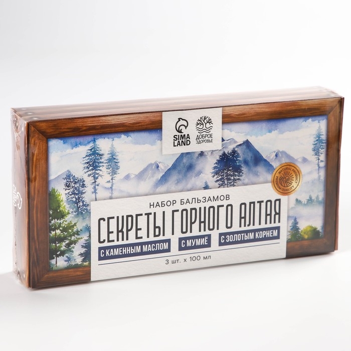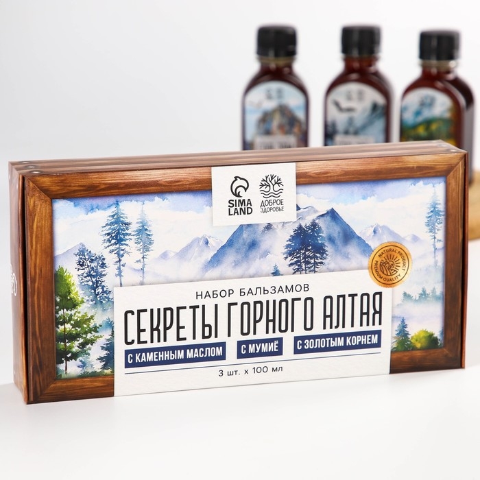 Набор бальзамов «Секреты горного алтая», с каменным маслом 100 мл., мумиё 100 мл., с золотым корнем 100 мл.