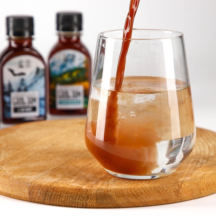 Состав: шиповник, черноплодная рябина, девясил, золотой корень, мать-и-мачеха, малина, душица, сахар-песок, вода очищенная, мёд натуральный цветочный, лимонная кислота.