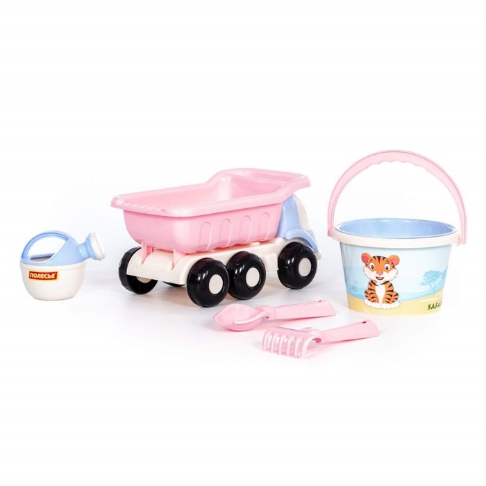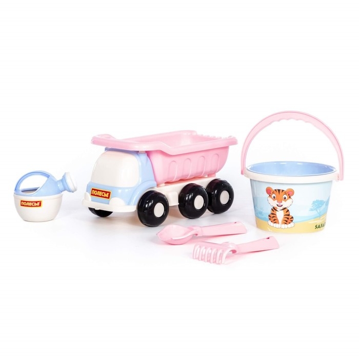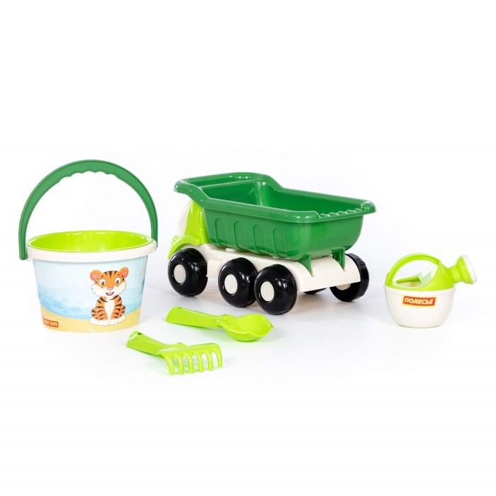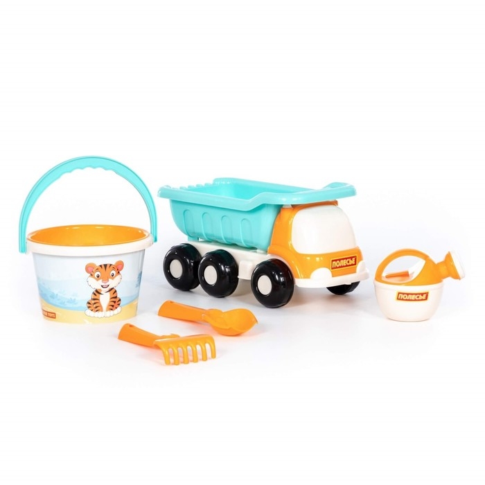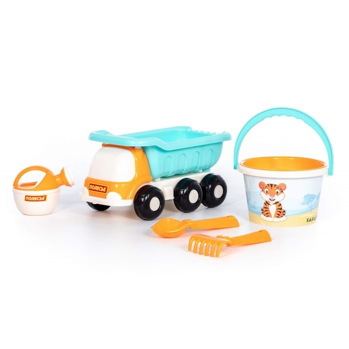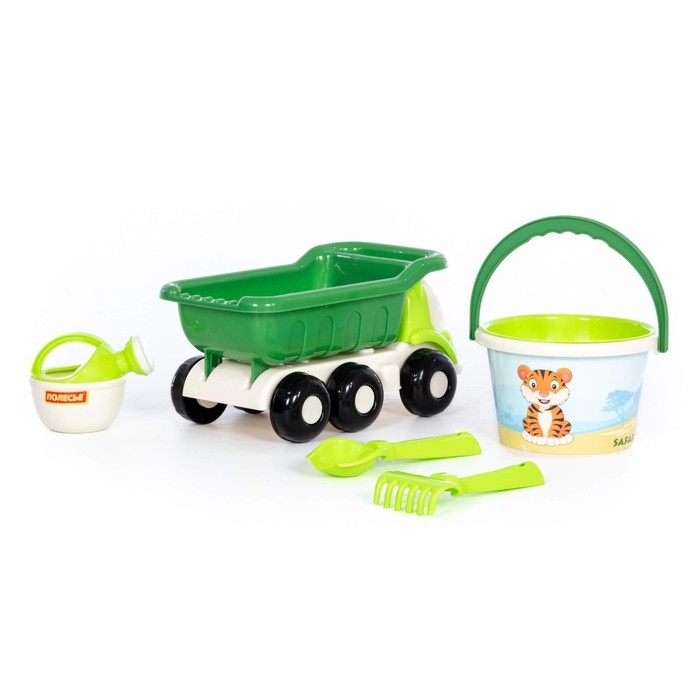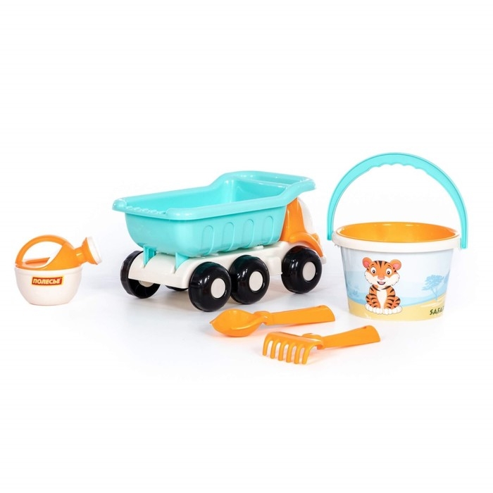 Песочный набор №640 «Кеша» сафари: самосвал, ведро, ситечко, совок, грабельки, лейка, цвета МИКС