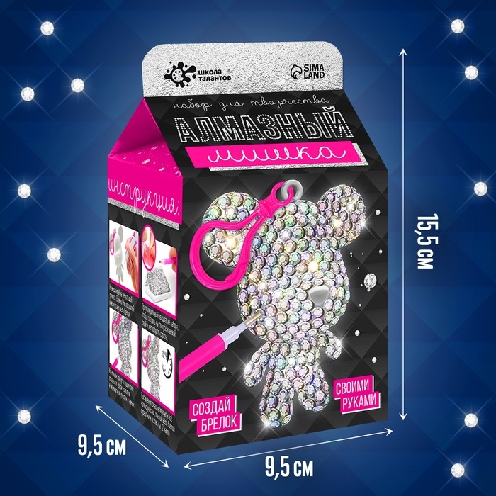 С набором для творчества «Алмазный мишка» у ребёнка получится создать сияющий брелок своими руками.