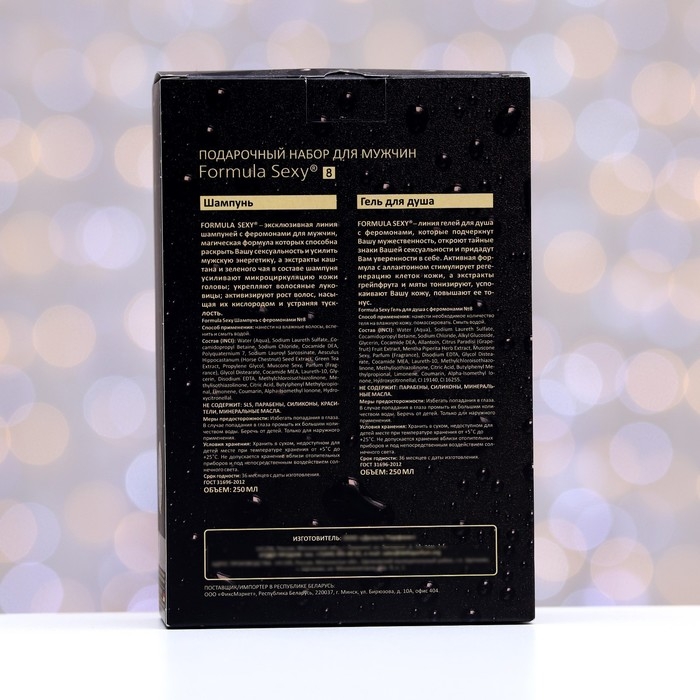 Косметический набор мужской "Formula Sexy №8" - это идеальное решение для современного и стильного мужчины, который стремится выглядеть привлекательно и ухоженно. Набор включает в себя гель для душа объемом 250 мл и шампунь объемом 250 мл, оба продукта разработаны специально для мужской кожи и волос.