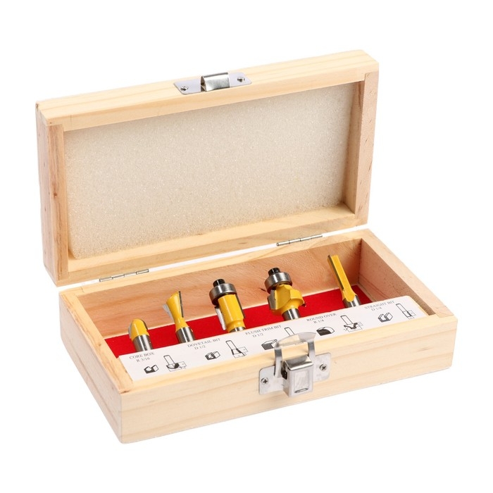 Набор фрез по дереву ТУНДРА, деревянный ящик, хвостовик 8 мм, 5 шт.