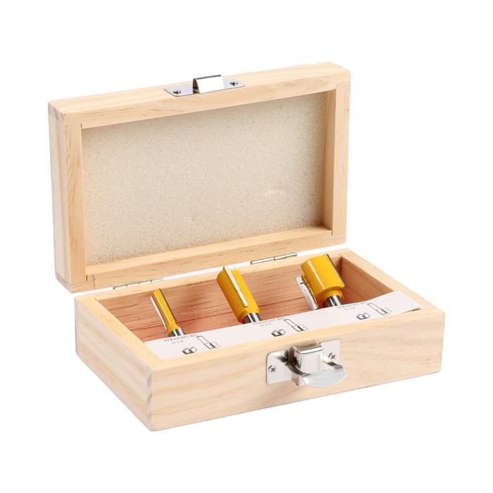 Набор фрез по дереву ТУНДРА, деревянный ящик, хвостовик 8 мм, 3 шт.