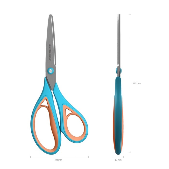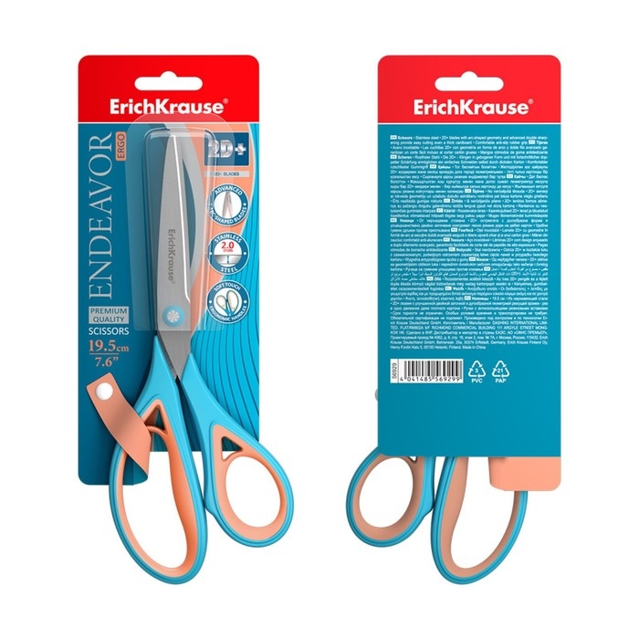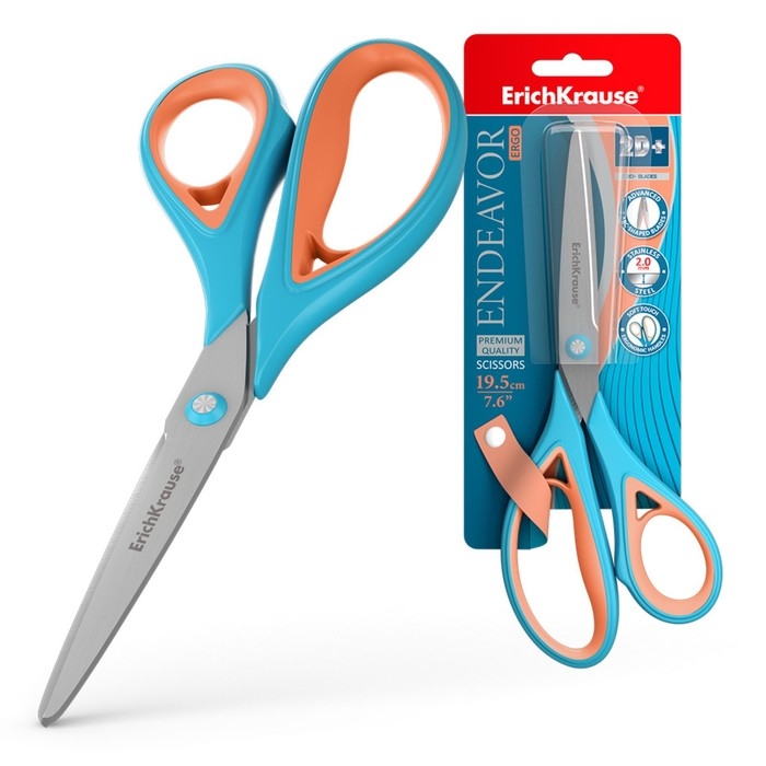 Ножницы ErichKrause Endeavor Ergo, 19.5 см, антискользящие резиновые вставки, улучшенная заточка, блистер, МИКС