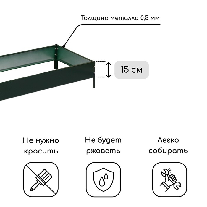 Грядка оцинкованная, 195 × 50 × 15 см, зелёная , Greengo