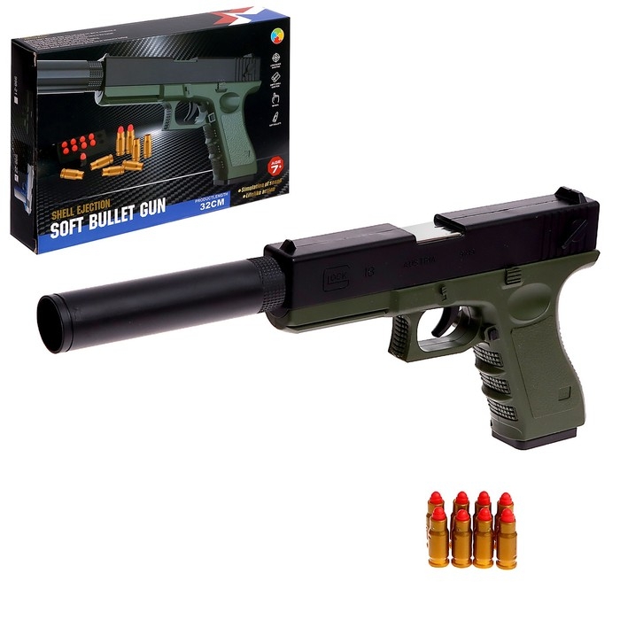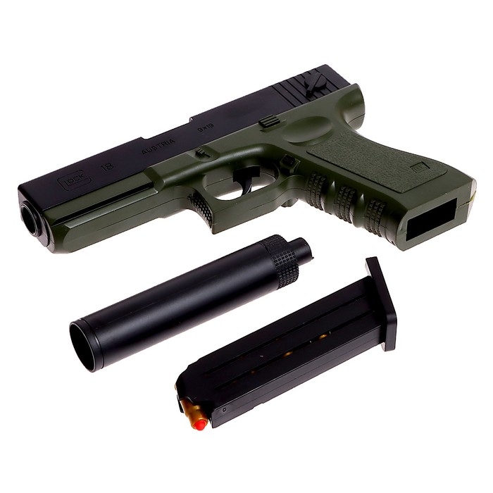 Пистолет «Глок», с гильзами, глушителем, стреляет мягкими пулями