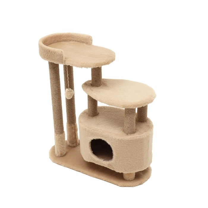 Комплекс для кошек с когтеточкой, угловой, с гамаком, 48 х 48 х 171 см, джут, искусственный мех, беж