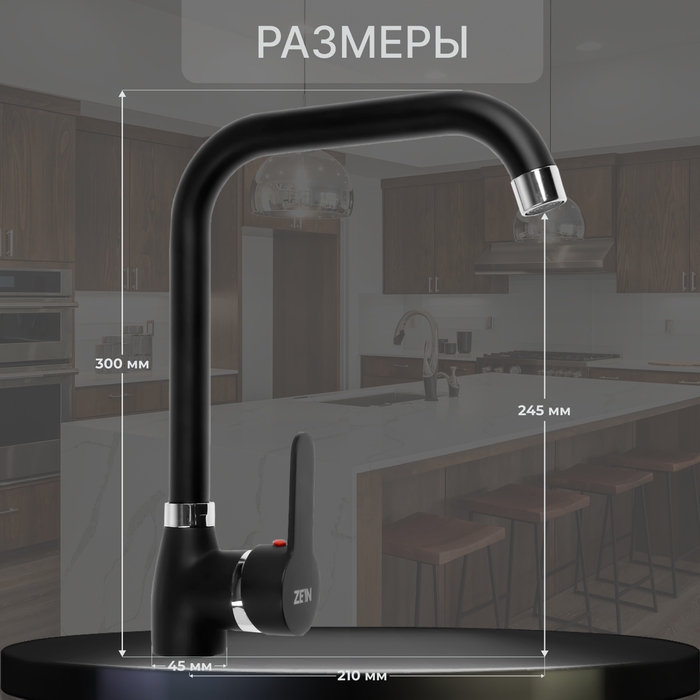 Смеситель для кухни ZEIN Z2228, однорычажный, высокий излив, картридж керамика 40 мм