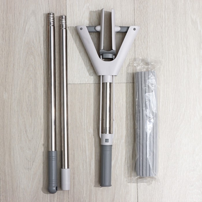 Швабра для мытья пола плоская гибкая Доляна, насадка из микрофибры букли 29×13 см, телескопическая стальная ручка 82(125) см, цвет серый