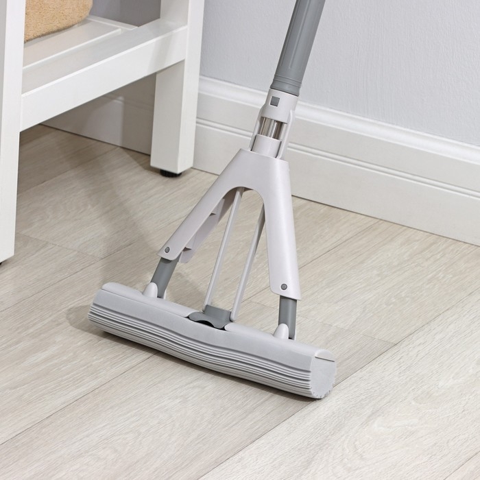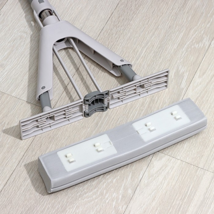 Швабра для мытья пола PVA Raccoon, со складным отжимом, насадка 28×6 см, стальная ручка с 3 секциями 130 см