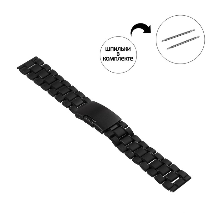 Ремешок для часов, 20 мм, l-17.5 см, шпиньки в комплекте, черный матовый