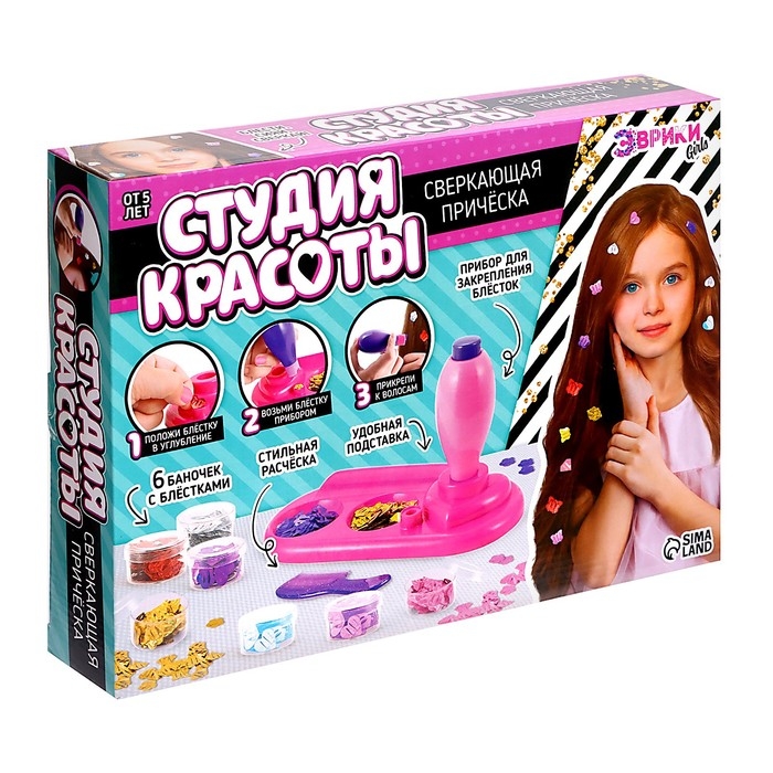 С набором «Студия красоты. Сверкающая причёска» девочка почувствует себя настоящим стилистом и воплотит самые смелые и яркие идеи в жизнь. С блёстками различных цветов и форм она создаст невероятные и оригинальные причёски!