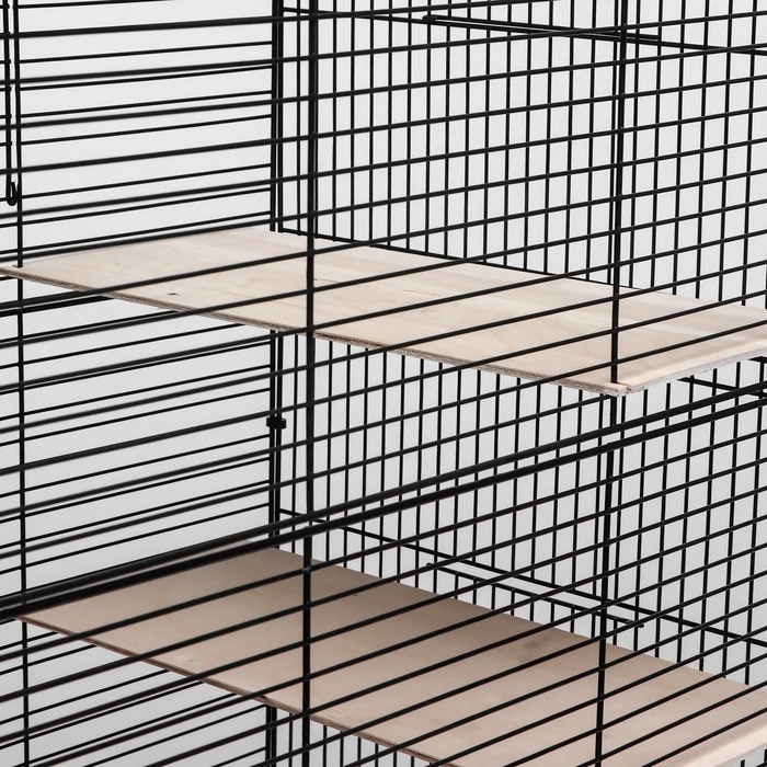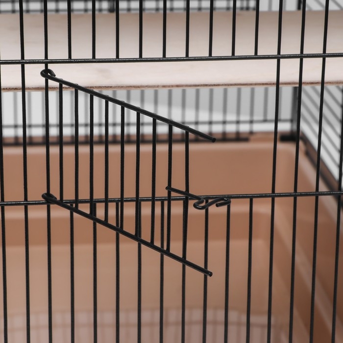 Клетка имеет три этажа. Это позволяет вашему питомцу свободно перемещаться по клетке и заниматься своими любимыми занятиями. Каждый этаж имеет отдельную дверцу, что облегчает уход за животным и чистку клетки.