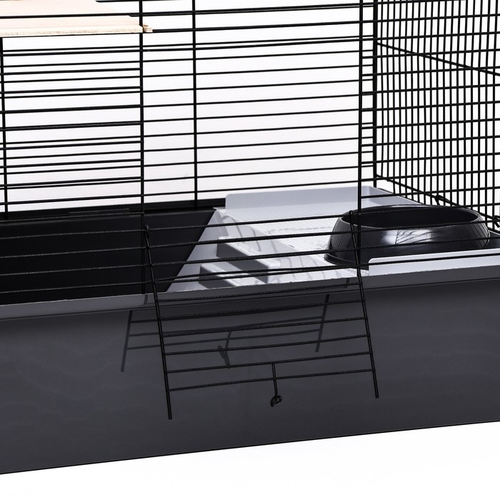 Клетка имеет два этажа. Это позволяет вашему питомцу свободно перемещаться по клетке и заниматься своими любимыми занятиями. Каждый этаж имеет отдельную дверцу, что облегчает уход за животным и чистку клетки.