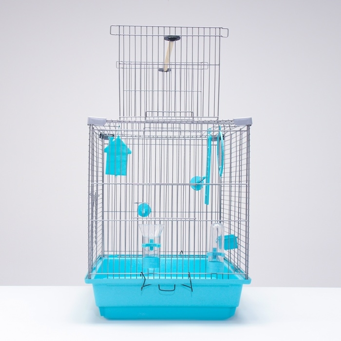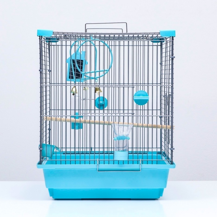 Клетка для птиц "Пижон" №101-Б, разборная, 42 х 30 х 65см (укомплект.) бирюзовая