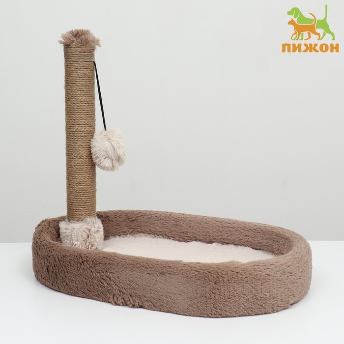 Лежанка с когтеточкой "Пижон", овальная, 55 х 36 х 47см, пушистый мех, джут, коричневая