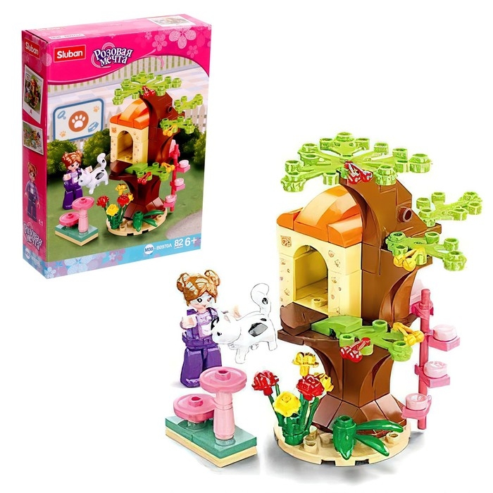 Конструктор Розовая мечта «Кошачий домик на дереве», 82 детали