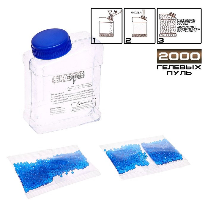 - В комплекте 2 000 гелевых пуль 7–8 мм.
