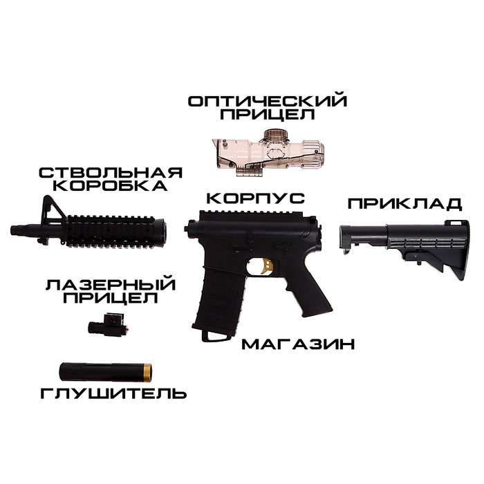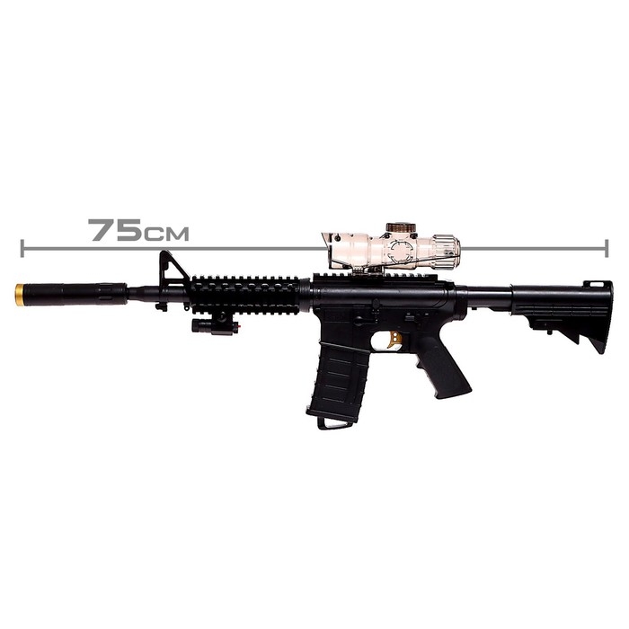 Штурмовая винтовка M4 — это надёжное оружие, которое позволит ребёнку почувствовать себя настоящим бойцом. Она стреляет гелевыми пулями. Такие снаряды лопаются при столкновении, не оставляют следов и не причиняют вреда.