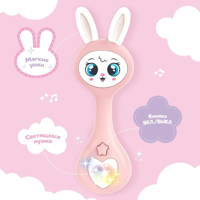 Музыкальная игрушка «Любимый зайчик», звук, свет, цвет розовый