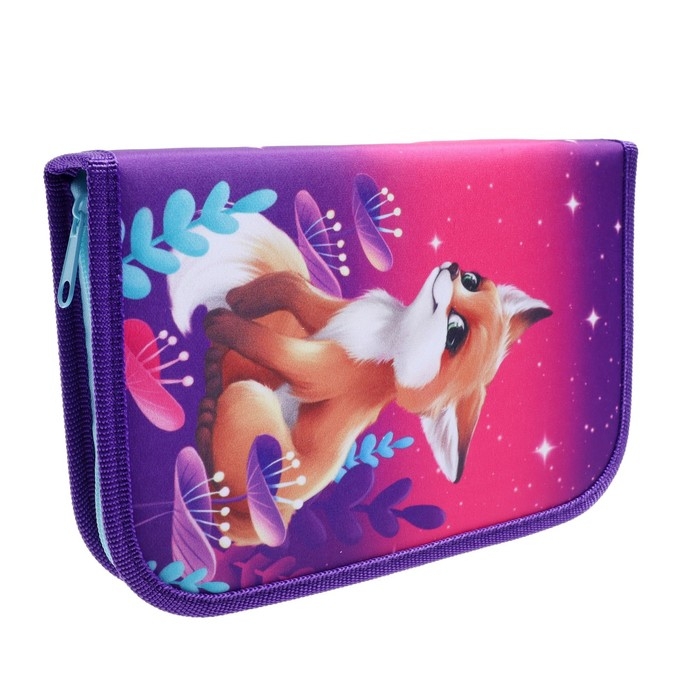 Пенал 3 секции, вкладка внутри, 140 х 210 х 40 мм, тканевый, Calligrata TOP Block "Лисичка"