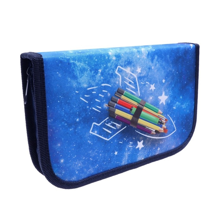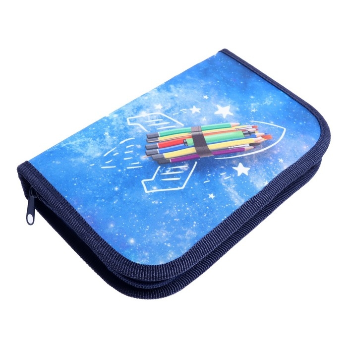 Пенал 1 секция, 130 х 210 х 40 мм, 2 откидные планки, тканевый, Calligrata TOP, Content "Ракета"