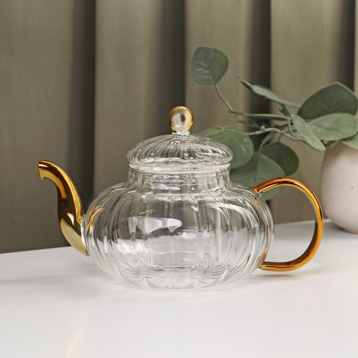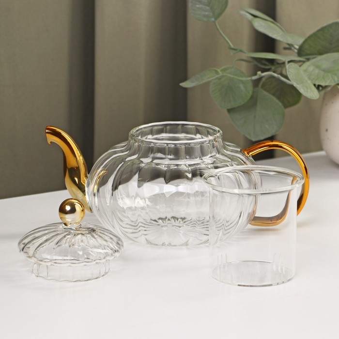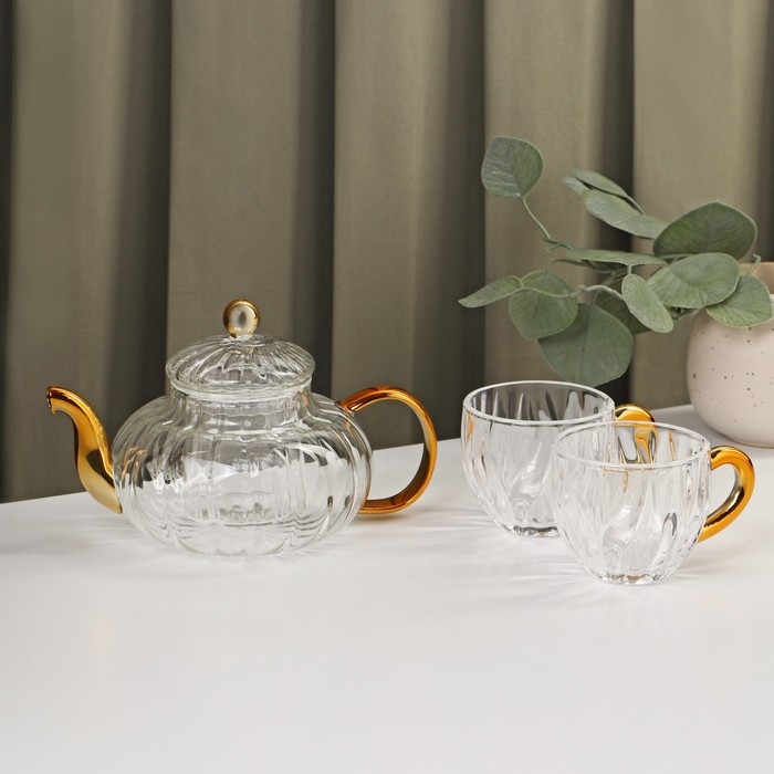 Набор чайный из стекла «Диана в золотом», 3 предмета: чайник 550 м, 2 кружки 150 мл