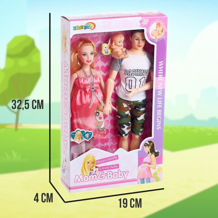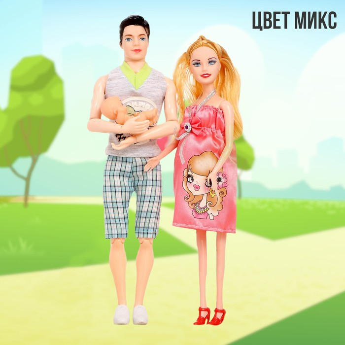 Набор «Молодая семья с пупсом»: кукла-модель беременная, кукла Алекс шарнирная