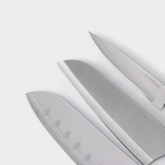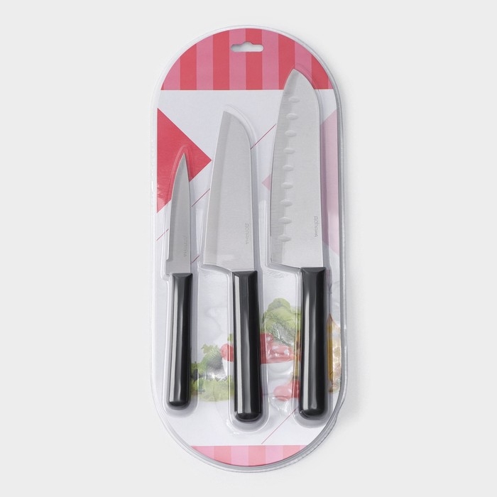 Набор кухонных ножей Доляна «Кулинарные изыски», 3 шт, лезвие 8 см, 11 см, 11 см, цвет чёрный