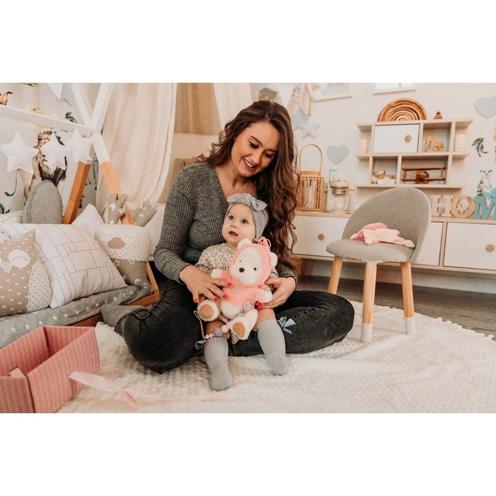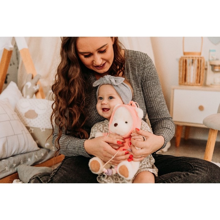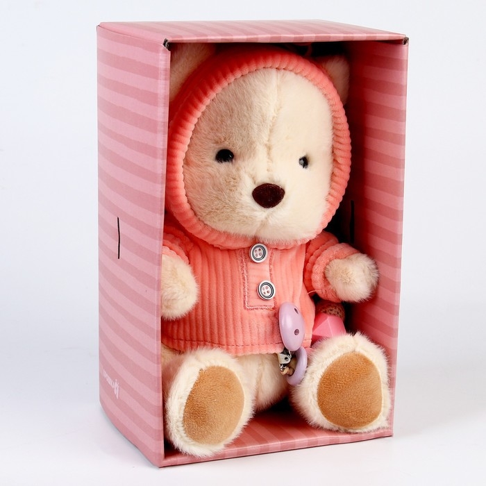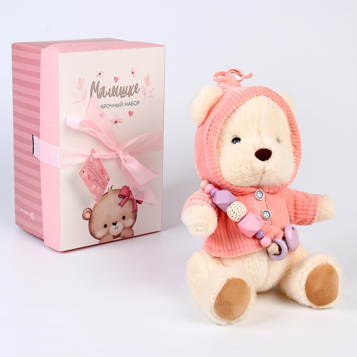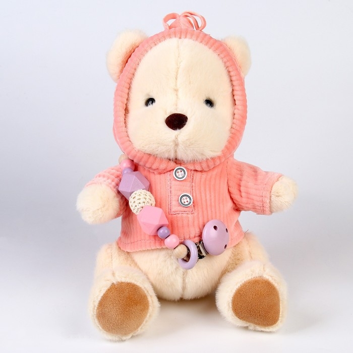 Подарочный набор: мягкая игрушка «Медвежонок» + держатель для пустышки, 23 см, розовый