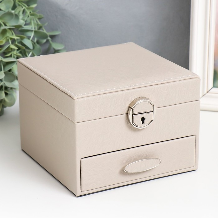 Шкатулка кожзам для украшений "Серый опал" 16х16х11,8 см