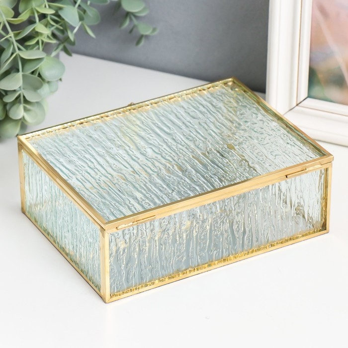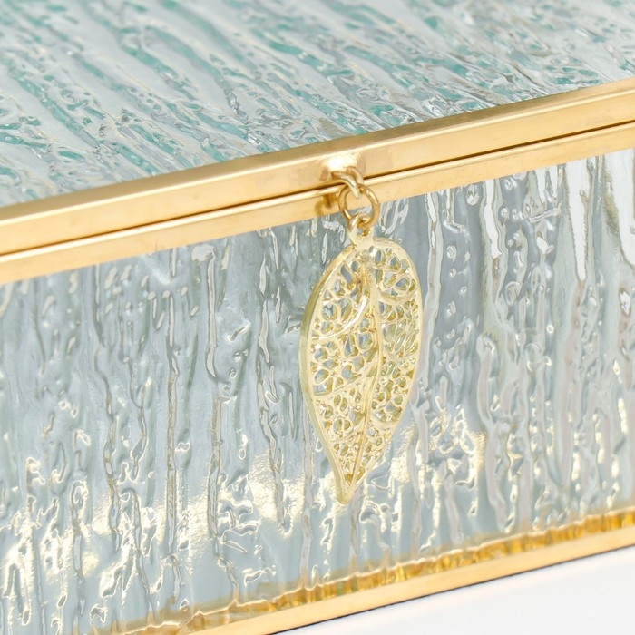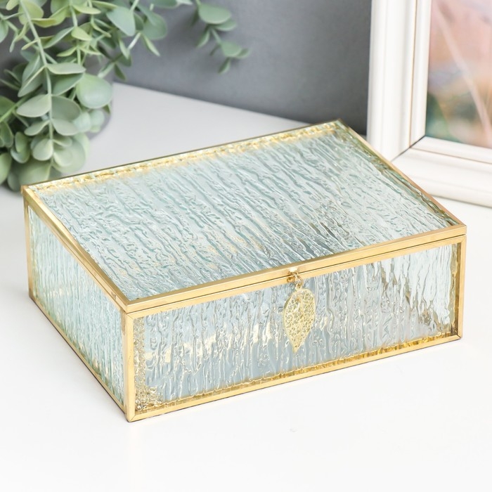 Шкатулка стекло с металлическим каркасом "Прямоугольная с листом. Кора" 18,5х14х6,5 см