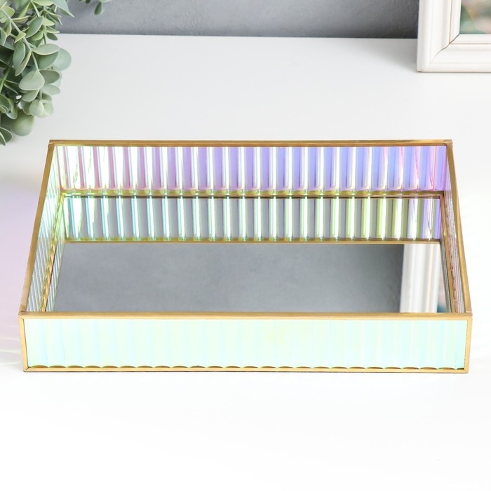 Подставка интерьерная стекло с зеркалом "Прямоугольник. Радужные полосы" 30х20х5 см