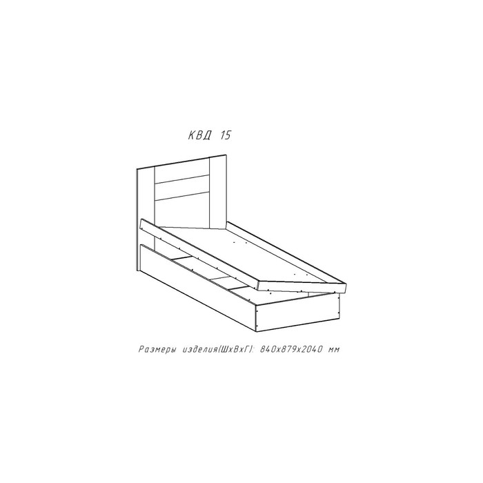 Кровать односпальная с ПМ и основанием 800*2000 Квадро 15, 840х2040х880, Дуб делано