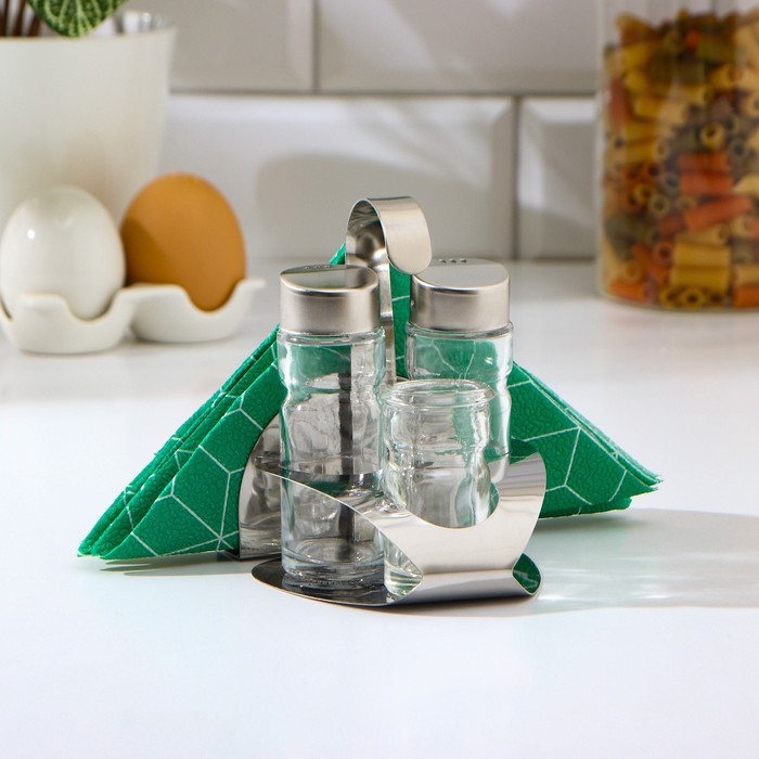 Набор для специй на подставке, 4 предмета: солонка, перечница, салфетница, ёмкость для зубочисток