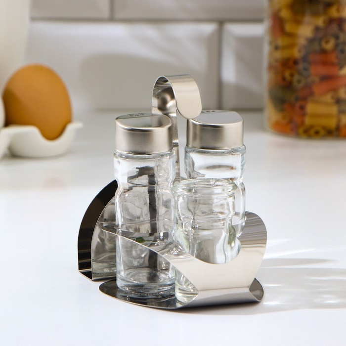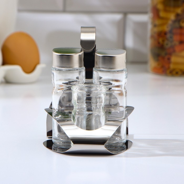 Набор для специй на подставке — это небольшой набор с емкостями для хранения соли, перца, а также других различных приправ. Изделие отличается красивым дизайном. Баночки выполнены из стекла, устойчивого к механическим повреждениям и перепадам температур, а прозрачные стенки емкости для специй позволят видеть количество приправ и их разновидность, поэтому вы никогда не ошибетесь с выбором. Благодаря подставке их удобно хранить и переставлять, не занимает много места выглядят стильно и практично.
