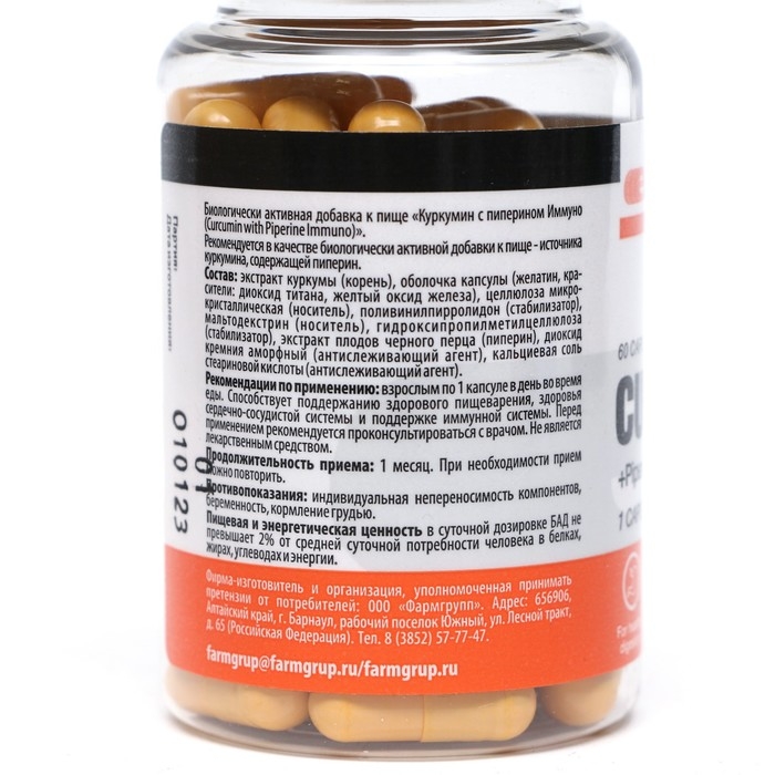 Куркумин с пиперином - биологическая добавка к пище, рекомендуется в качестве источника куркумина, содержащий пиперин.