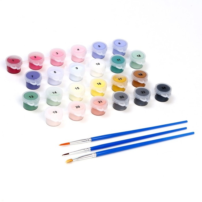 - В набор входят все необходимые оттенки красок. Баночки пронумерованы.