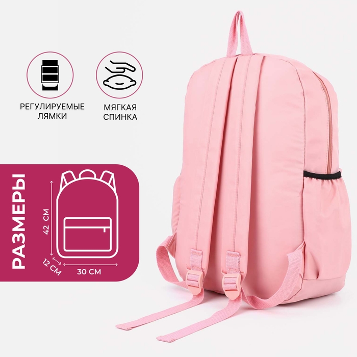 Рюкзак школьный на молнии, 3 наружных кармана, цвет розовый