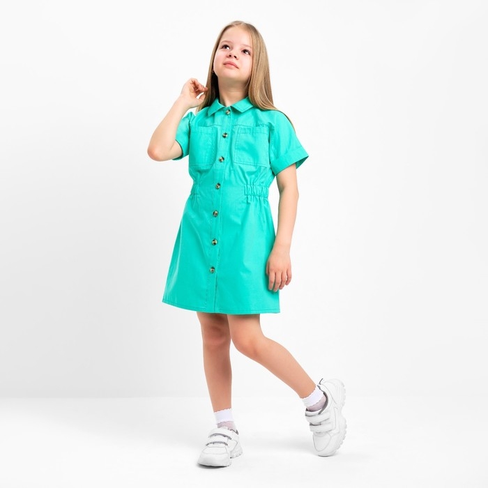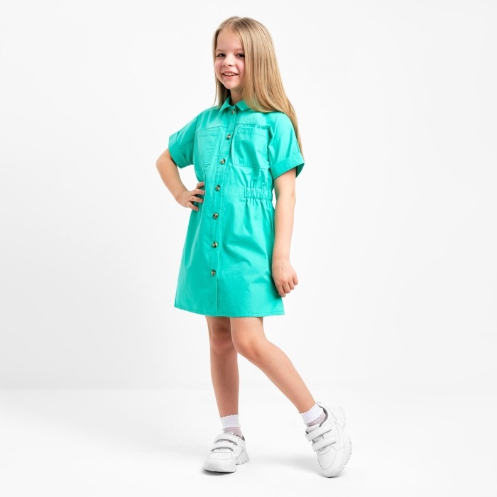 Платье детское с карманами KAFTAN, размер 30 (98-104 см), цвет зелёный