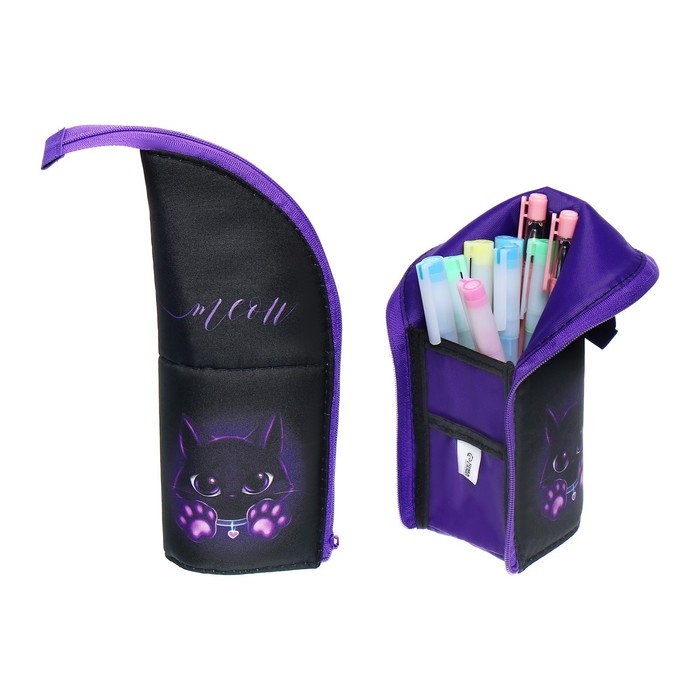 Пенал тубус-подставка, 85 х 210 х 65 мм, мягкий, тканевый, Calligrata, ПМО 12-20 "Котик"