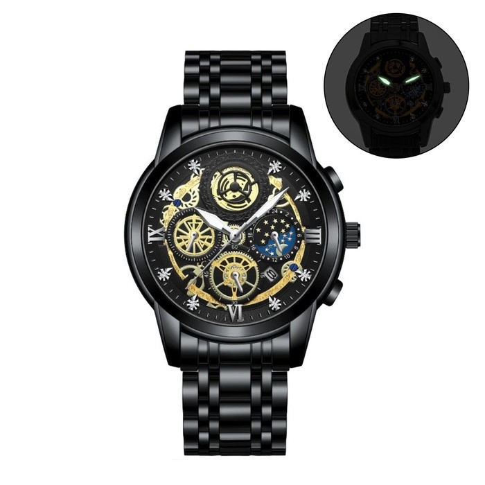 Часы мужские наручные металлические кварцевые "IIK Collection", с календарем, d-4.8 см