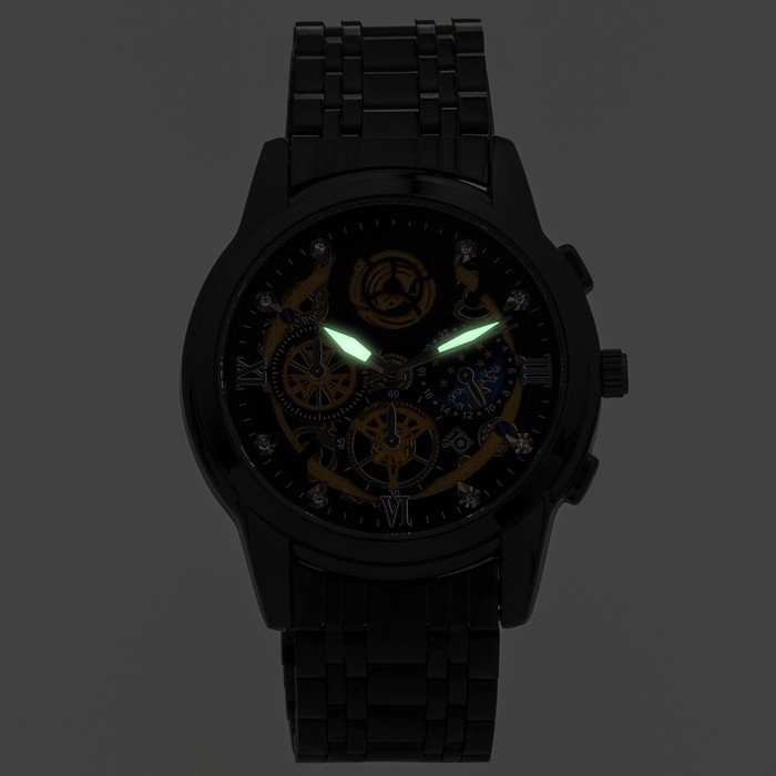 Часы наручные кварцевые мужские, d-4.4 см, ремешок l-26 см, 3 АТМ, светящиеся